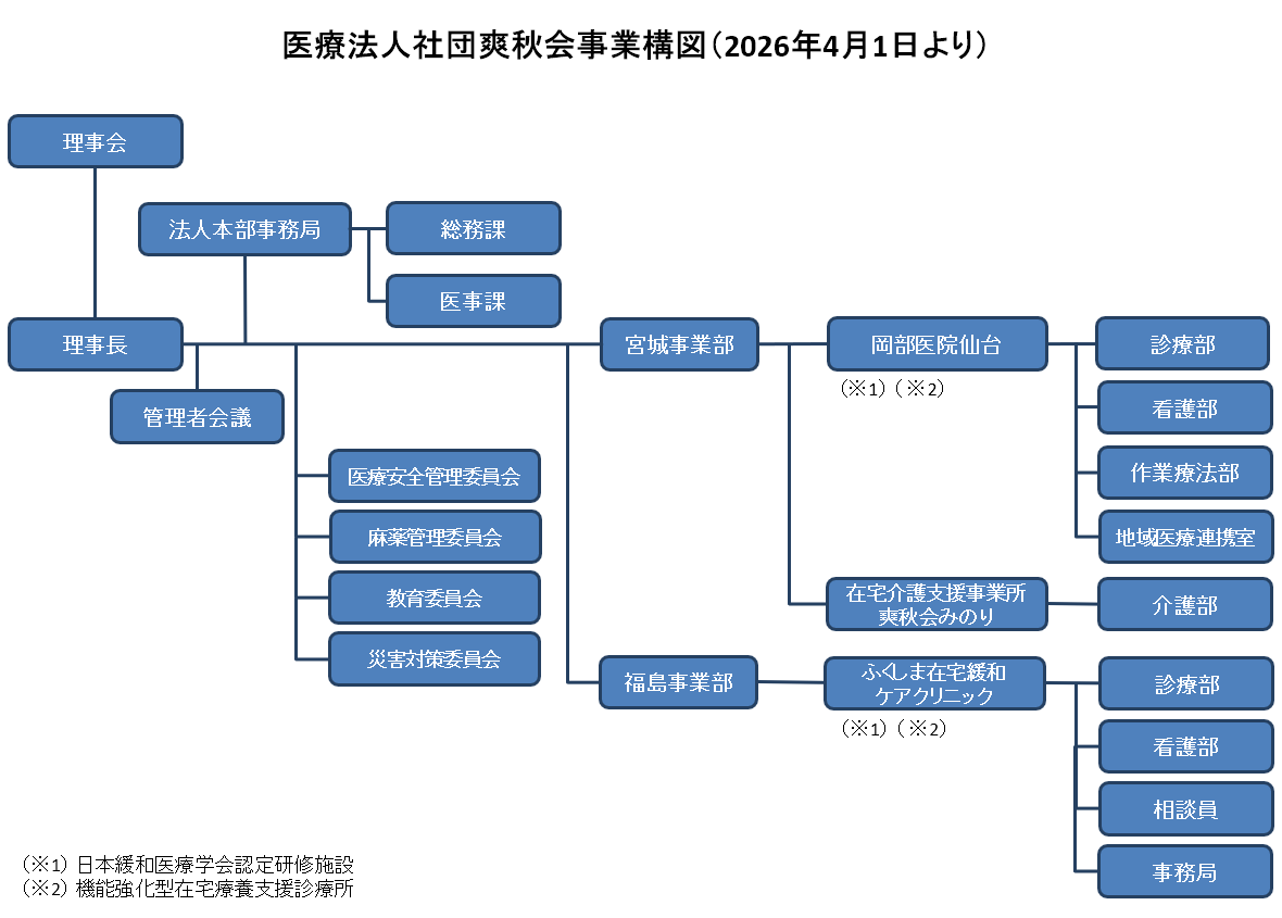 | 1999年12月 | 宮城県名取市に医療法人社団爽秋会設立 |