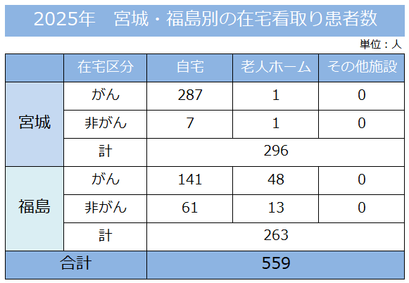 | 2007年10月 | 福島県福島市にふくしま在宅緩和ケアクリニック(在宅療養支援診療所)開設 福島県福島市にふくしま在宅緩和ケア訪問看護ステーション開設 |
